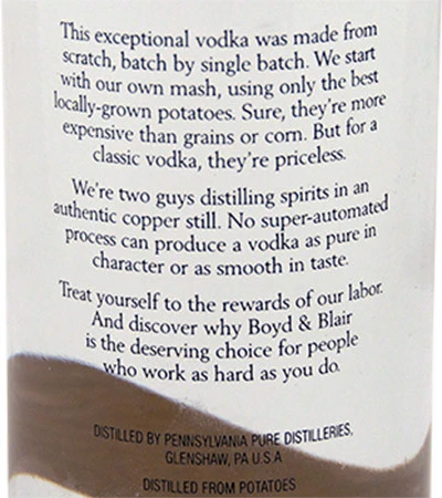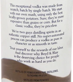 In an old warehouse with a cracking facade and grass growing in the rain gutters, Master Distiller Barry Young rests his hand on a custom-made, 1,200-liter copper pot still. Inside the still, Young, the former CEO of RX Partners, a pharmaceutical services company, is distilling another batch of Boyd & Blair Vodka. Using only locally-sourced Pennsylvania potatoes, each batch of Boyd & Blair Vodka is made from scratch and tasted twenty times before being labeled and bottled by hand. The potatoes, Young says, produce a silkier, sweeter vodka than traditional grains such as wheat, rye or corn.