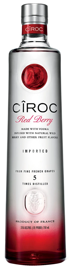 CÎROC Red Berry is one of the first flavor-infused expressions of CÎROC. This Ultra-Premium Vodka is distilled five times then infused with raspberry, natural strawberry flavors, yielding a smooth spirit. The result is a balanced, luscious, berry-infused vodka.