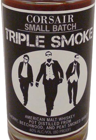 Corsair Triple Smoke Small Batch American Malt Whiskey is made exclusively from American malted barley. Once Bell sources the barley, he divides it into three fractions and smokes each fraction over a different fuel. While a portion of the barley is smoked over a traditional peat flame, another portion is smoked over a cherry wood flame, and the remainder is smoked over a beechwood flame. This smoking process — unique in the industry — contributes well-balanced notes of sweet fruits and peaty smoke to the whiskey, and adds an unusual depth and complexity.