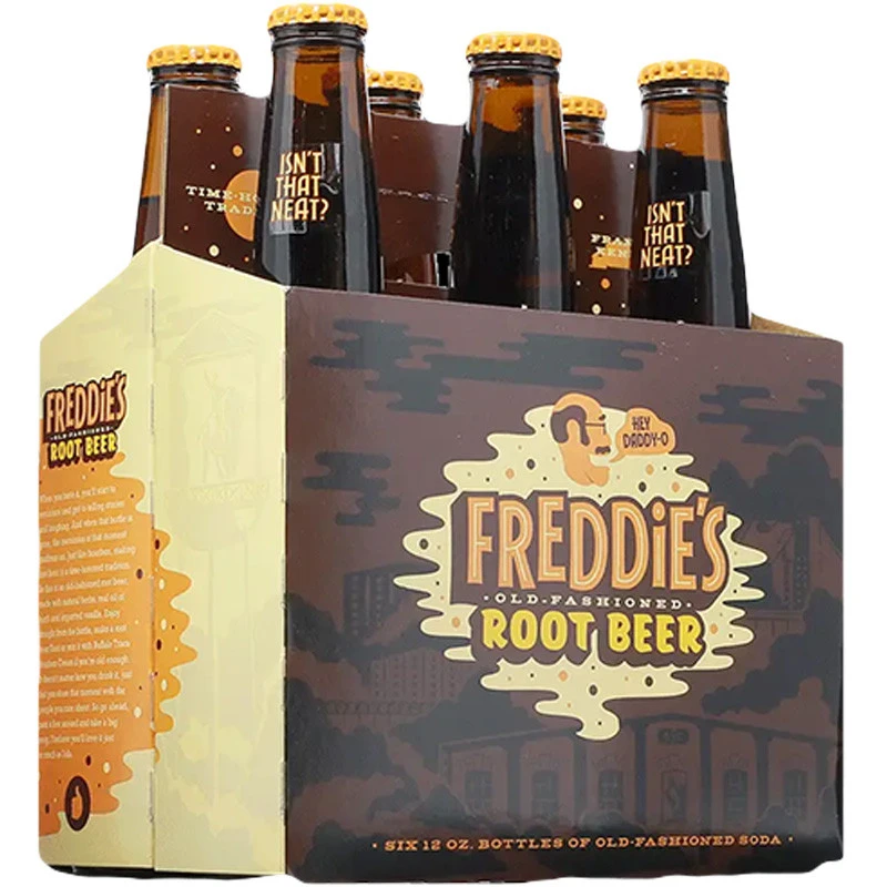 Made with natural herbs, real oil of birch, and imported vanilla Freddie’s Old-Fashioned Root Beer is a deliciously smooth soda made to be enjoyed with friends and family—just like bourbon. The bottle design features Freddie’s recognizable image and his well-known catchphrases. Isn’t that neat? The six-bottle carrier depicts scenes of the Distillery and Freddie fishing along the banks of the Kentucky River—a shoutout to Freddie’s fishing trips with his dad and grandad. That’s what inspired the Distillery to make these old-fashioned sodas—perfect for sipping, sharing, and making memories. Drink it neat, on rocks, or mix it with Buffalo Trace Bourbon Cream to make a fabulous root beer float.