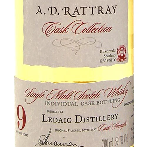 This Ledaig is bottled by A. D. Rattray, an independent family owned bottling company that has been blending and maturing single malt Scotch whiskies since 1868. Aged in bourbon hogshead barrels this 9-year-old Island single malt features bold, peaty overtones, underpinned by sweet flavors.