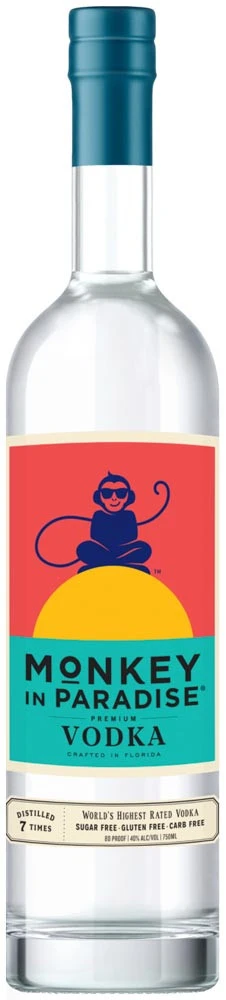 This premium vodka is exceptionally elegant. Distilled and bottled in Palm Beach Florida using only premium ingredients, including non GMO corn. Monkey In Paradise Vodka was unanimously awarded to be the highest rated vodka in the World in 2017.