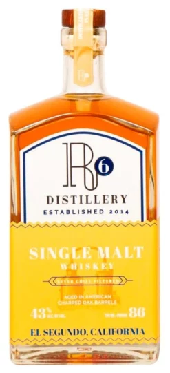The R6 Single Malt Whiskey is a European-style spirit that is crafted from 100% single-distillery malted grain. The mash bill includes peated malt, distiller’s malt, chocolate malt, and coffee malt. The whiskey has spent at least one year in American charred oak barrels and has notes of peat and coffee, along with a gentle sweetness.
