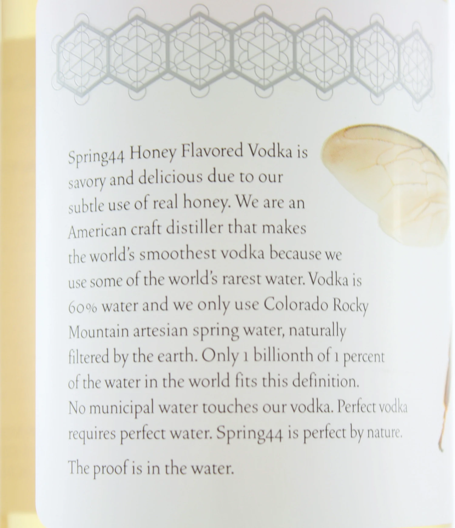 Spring44 is an incredibly smooth and pure vodka. It has hints of vanilla and caramel, and a touch of sweetness as a result of the honey and Spring44 water. “It’s a mix of legacy — the land of my father — and this spring,” explains Lindauer. “We’re building a truly great American brand. And we’re doing it authentically.”