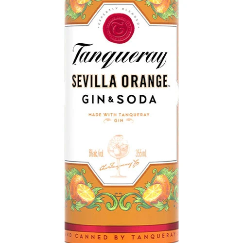 In 2020 Tanqueray launched their first threesome of canned cocktails: Tanqueray Gin & Tonic, Tanqueray Rangpur Lime Gin & Soda, and Tanqueray Sevilla Orange Gin & Soda. The latter is made with Tanqueray gin, sparkling water, and natural orange essence. The 6% ABV ready-to-drink cocktail is bright, citrusy, and zesty with prominent orange notes.