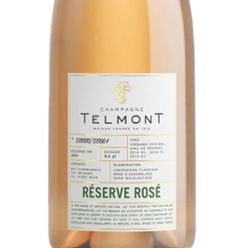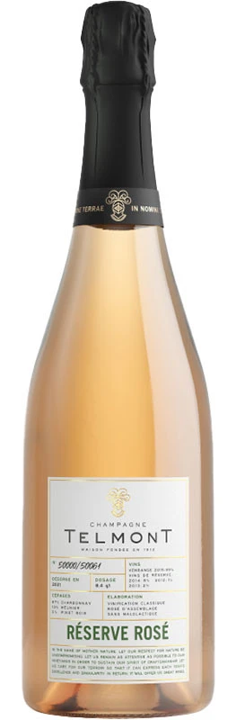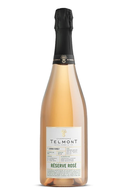 Telmont Réserve Rosé is a fresh, complex, and fruity brut Champagne that’s crafted with grapes from 4 harvests (2012, 2013, 2014, and 2015) and 2 varietals: 87% Chardonnay, and 13% Meunier. It has spent 5 years in underground cellars, resulting in a full-bodied, fruity, and elegant Champagne that pairs best with parmesan cheese.